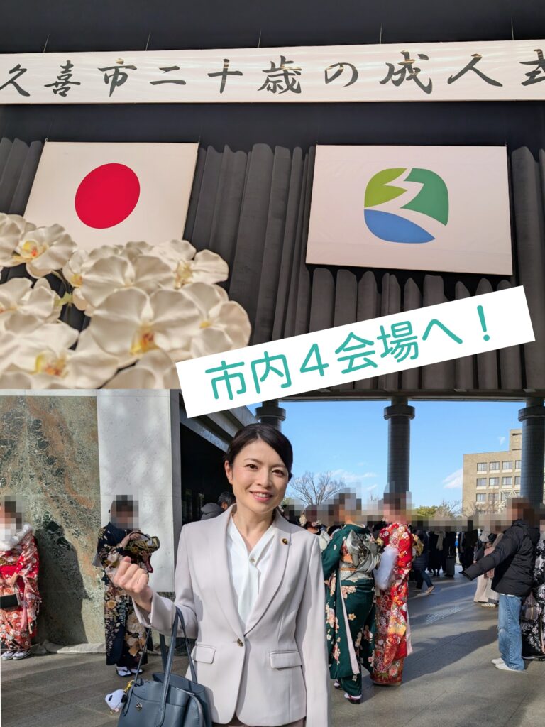 昨日おとといはポスティングに力を入れ、今日は「久喜市二十歳の成人式」に参列しました。