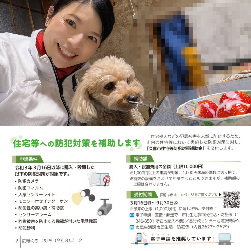 現在配布中の「広報くき」に掲載されている【防犯対策の補助金】については、前議会で様々な質疑を行ったので、内容は完璧に把握しています。
